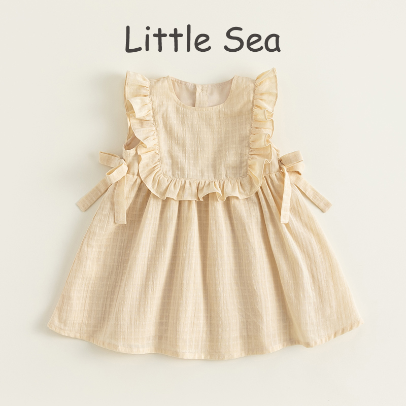 Baby summer dress dress girl pure cotton French style retro floral side cuff girl foreign air sleeveless vest ladies skirt-Taobao
