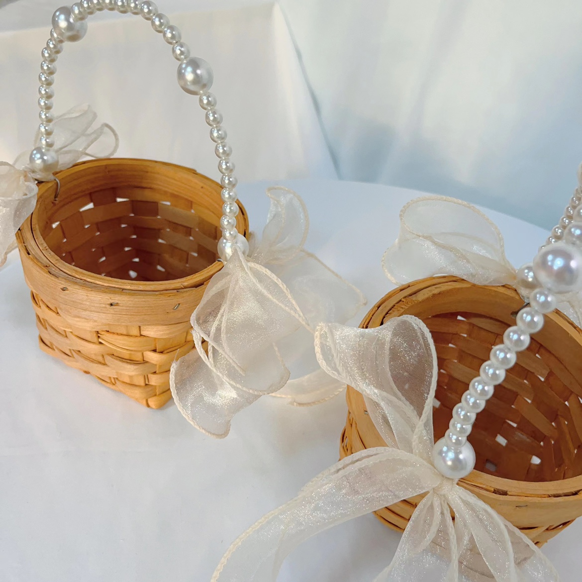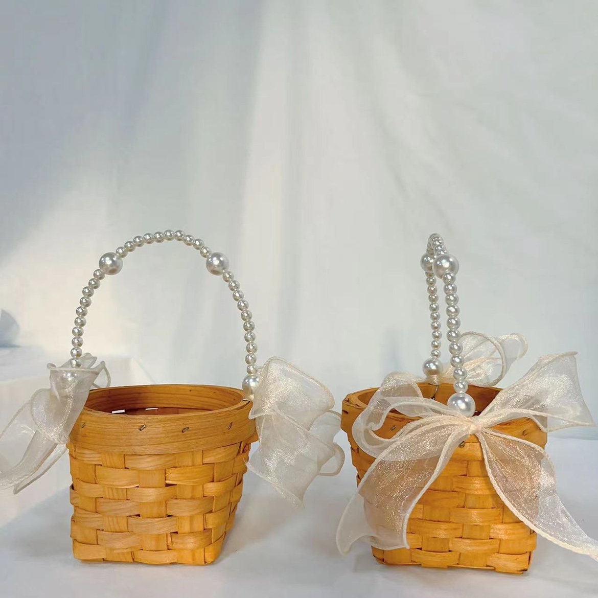 38 knots mini pearl rattan chile flower basket small flower basket lace silk screen yarn senteal wood piece to prepare flower basket salon flower art basket-Taobao