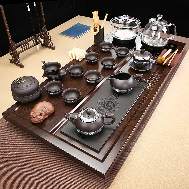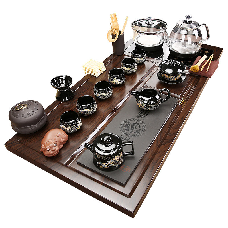 Solid Wood Tea Tray Purple Sand Tea Set Suit Home Glass Bottom Automatic Upper Kettle Integrated Modern Light Lavish Simplicity-Taobao