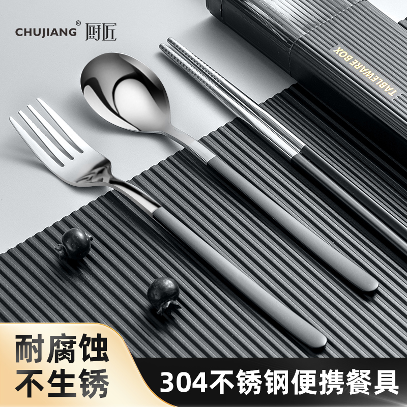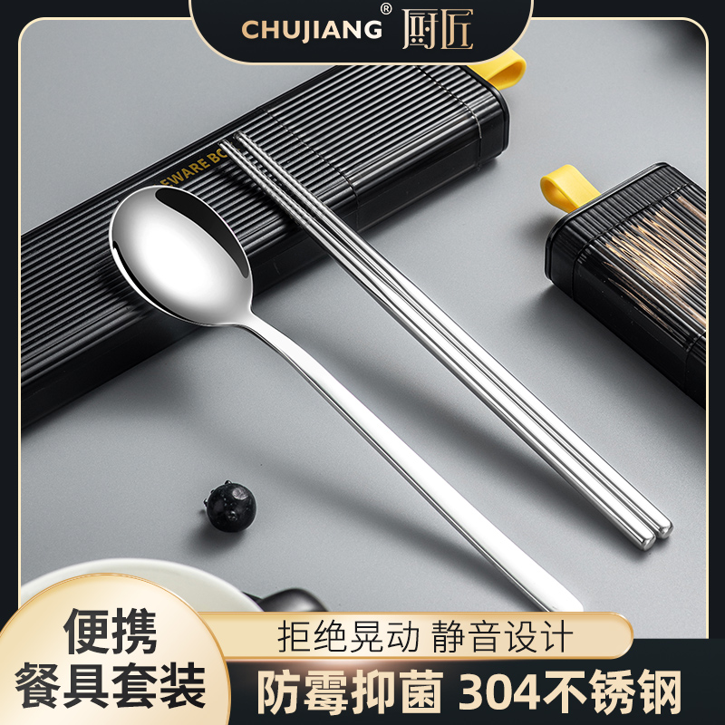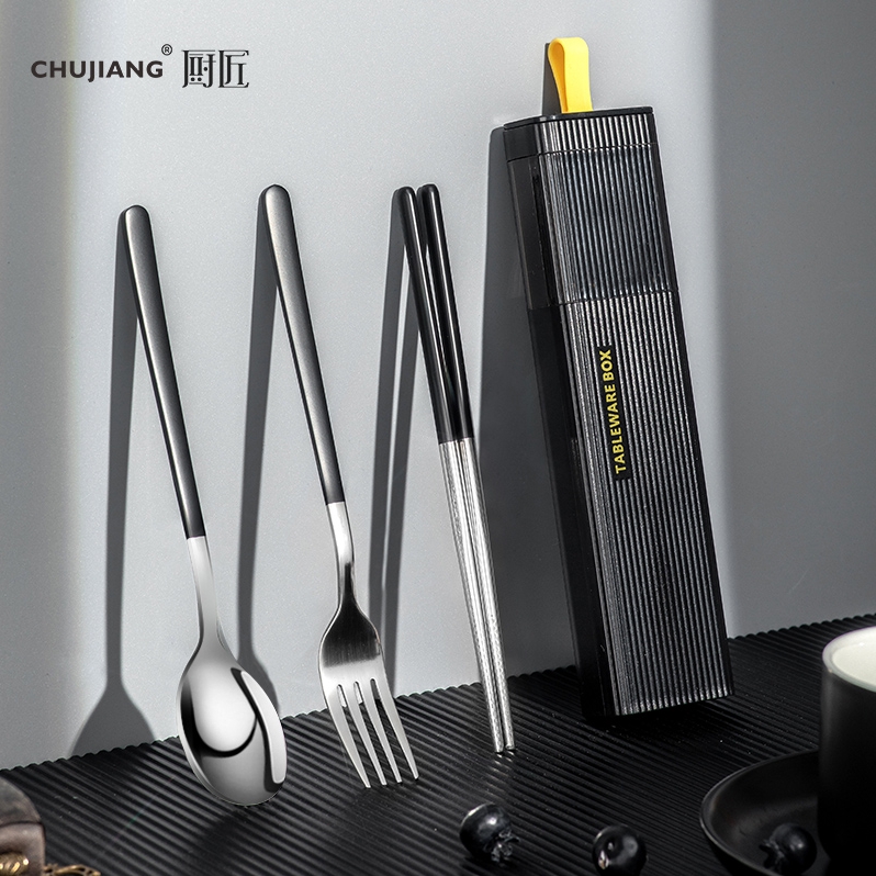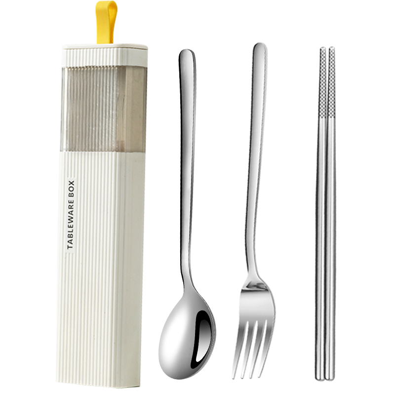 Stainless steel chopsticks spoon set for one person with three-piece package for students with a package of three-piece student collection box portable tableware set