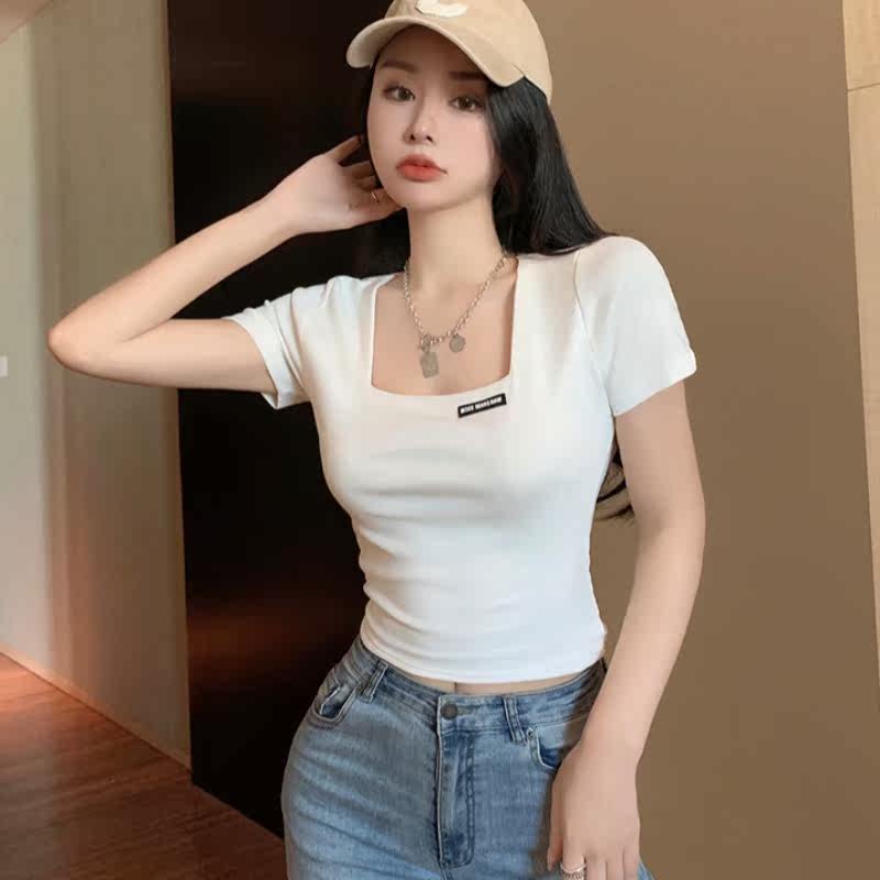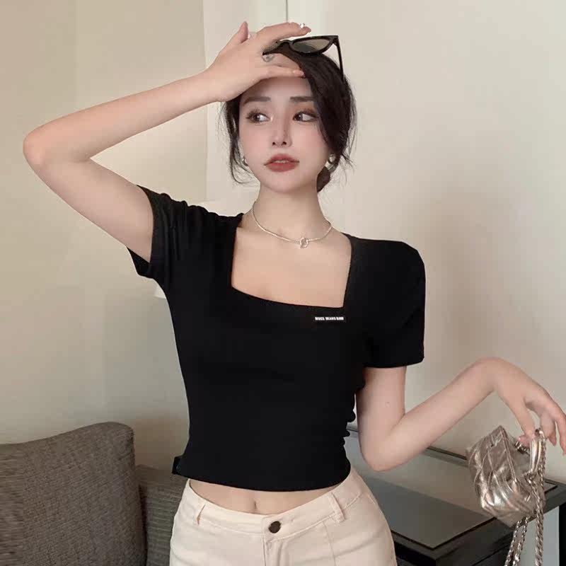 FAIRY MAJE leads the short sleeve T-shirt women summer 2023 new fix sexy high waist short black coat