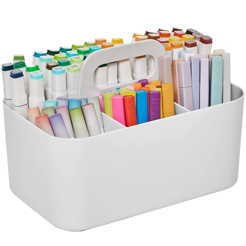 Mark pen containing box (5 lattice with lifting handle) (8 lattice with wooden handle) blue separator (8 lattice with wooden handle) pink partition (8 lattice with wooden handle) orange sepp
