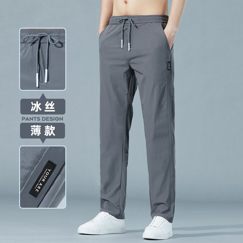 Hong Kong 2023 Summer Thin Ice Silk Casual Pants Men's Loose Straight Quick-drying Breathable Cool Sports Long Pants