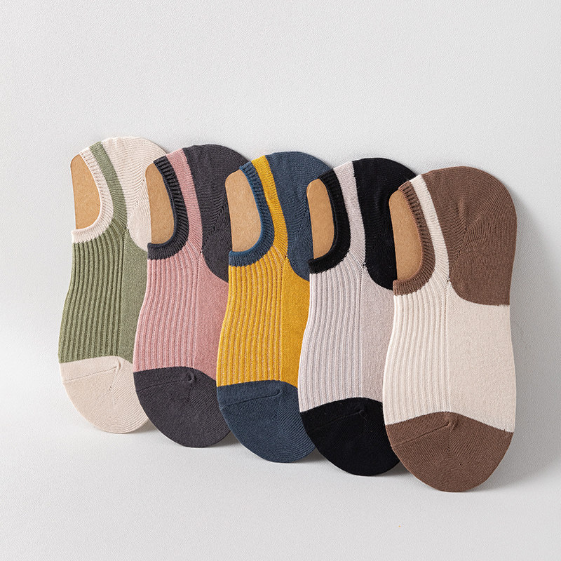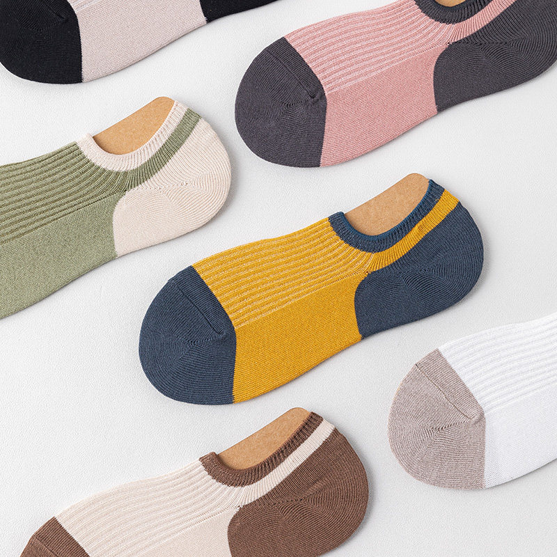 Boat socks female non-slip anti-drop heel pure cotton spliced socks shallow mouth silicone short socks pure spring summer season invisible thin section-Taobao