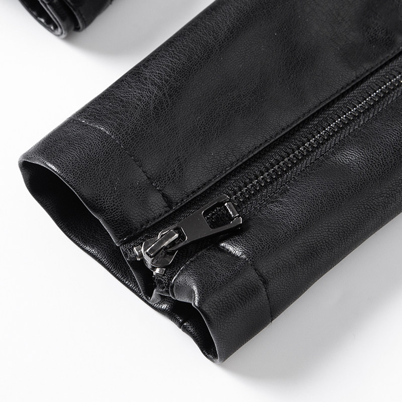 Henning Genuine Leather Leather Clothing Woman Short of Body Fashion Korean Version Big Code Cotton Parchment Leather Locomotive Leather Jacket Black Small Jacket-Taobao