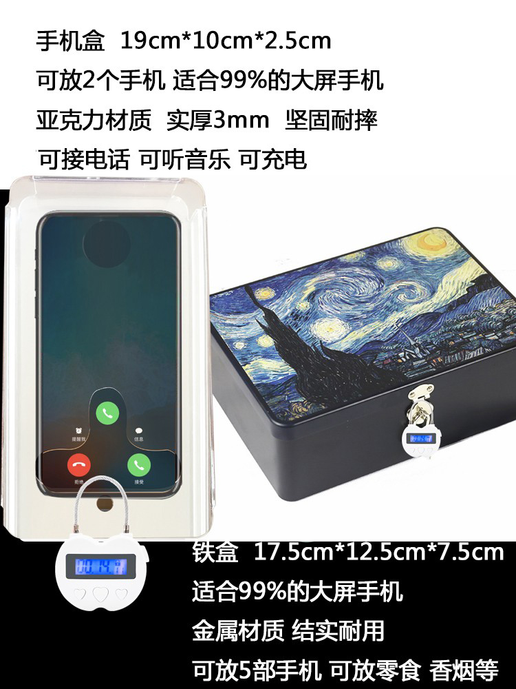 Metal silver timing lock Tablet pack Metal black timing lock Iron box Metal silver timing lock Mobile box Iron box Common square white timing lock Mobile phone box Metal silver