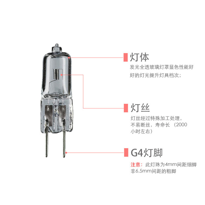 G4 halogen lamp bead 12v10W20w two-pin led halogen crystal lamp mini small plug spotlight bulb
