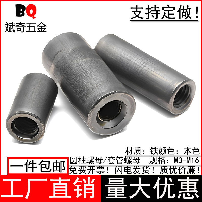 Round welded inner screw sleeve cylindrical lengthened nut column iron casing connecting round nuts m3m4m5m6m8-Taobao