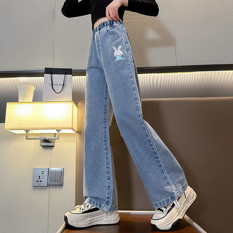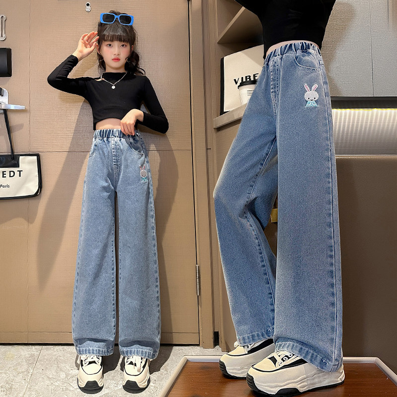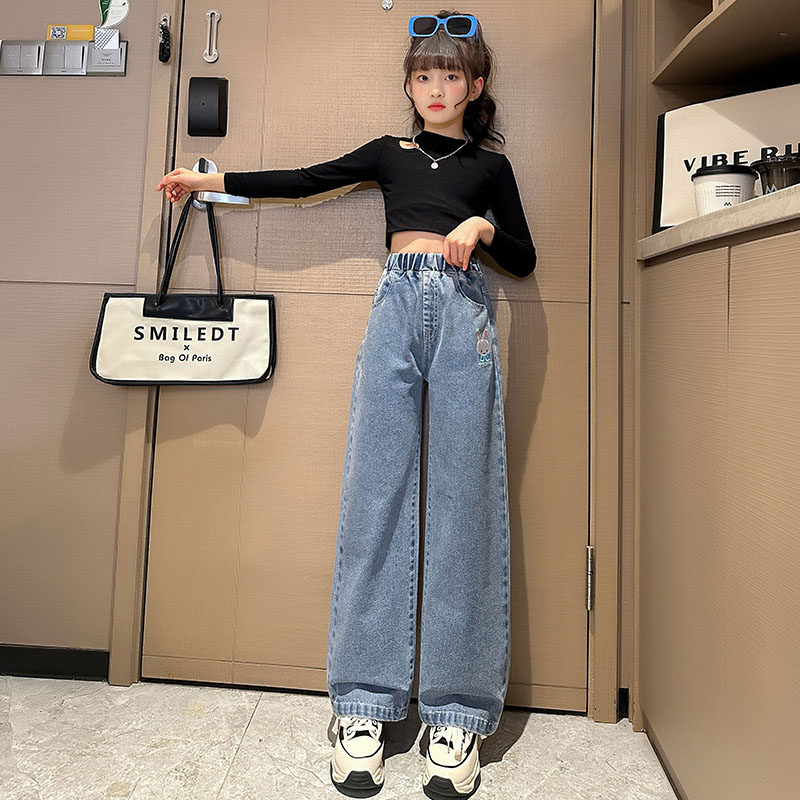 Girls broad legs and autumn 2023 new children with fashionable leisure and relaxed thin jeans
