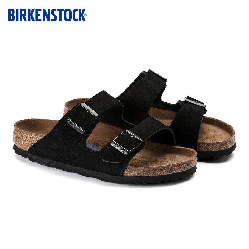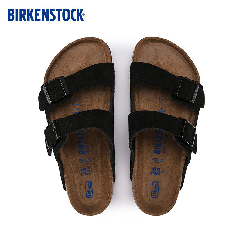 BIRKENSTOCK Double buckle cool towed male and female with the same soft bottom cork slipper Arizona series-Taobao