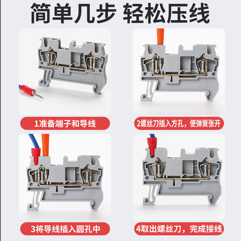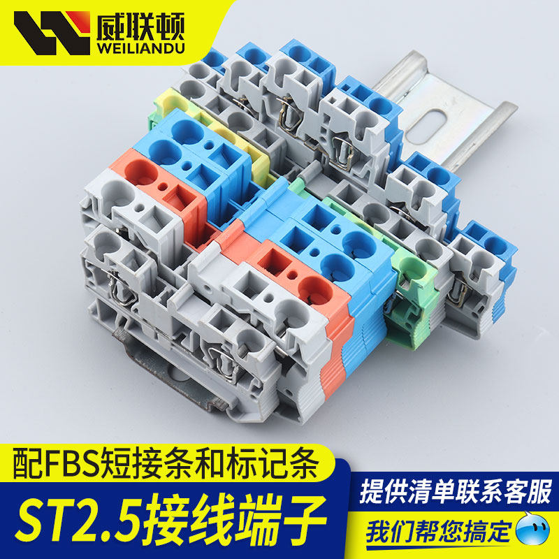 ST2 5 4 rail terminal block row fast direct plug type pure copper material flame retardant spring terminal UK shrap