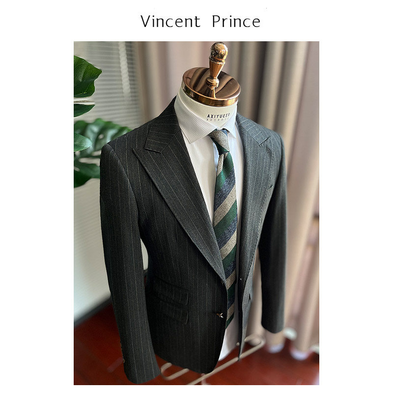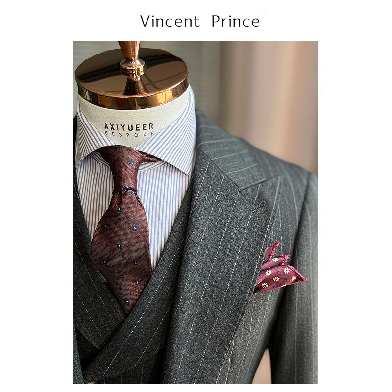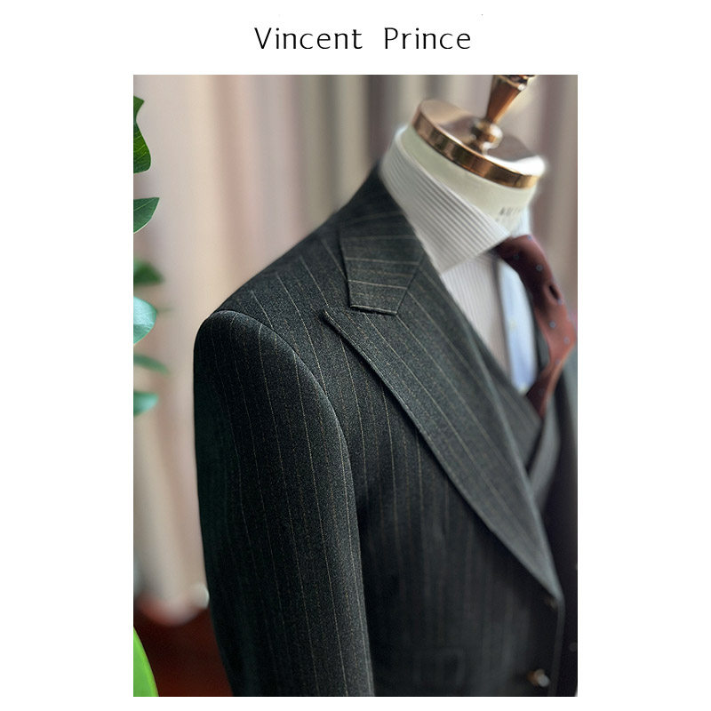 The groom's suit suit three sets of business sashimi wedding gown, Korean version casual light lavish grey striped suit man