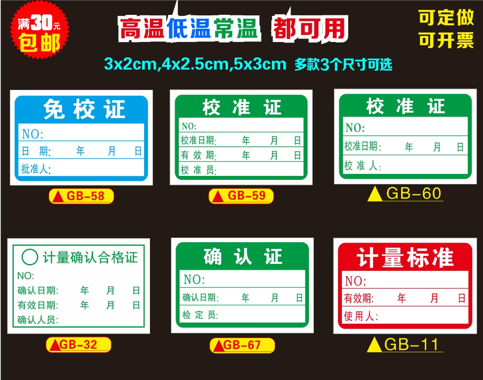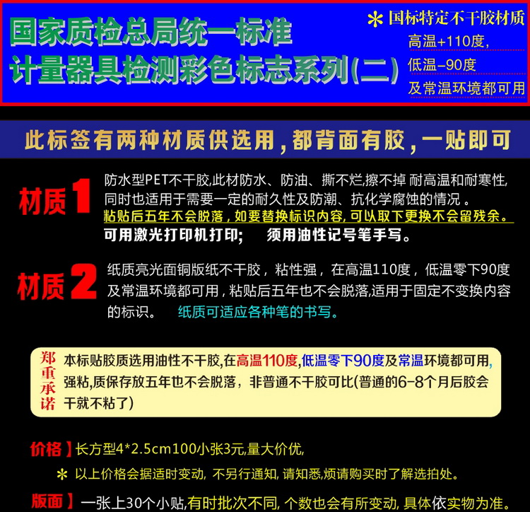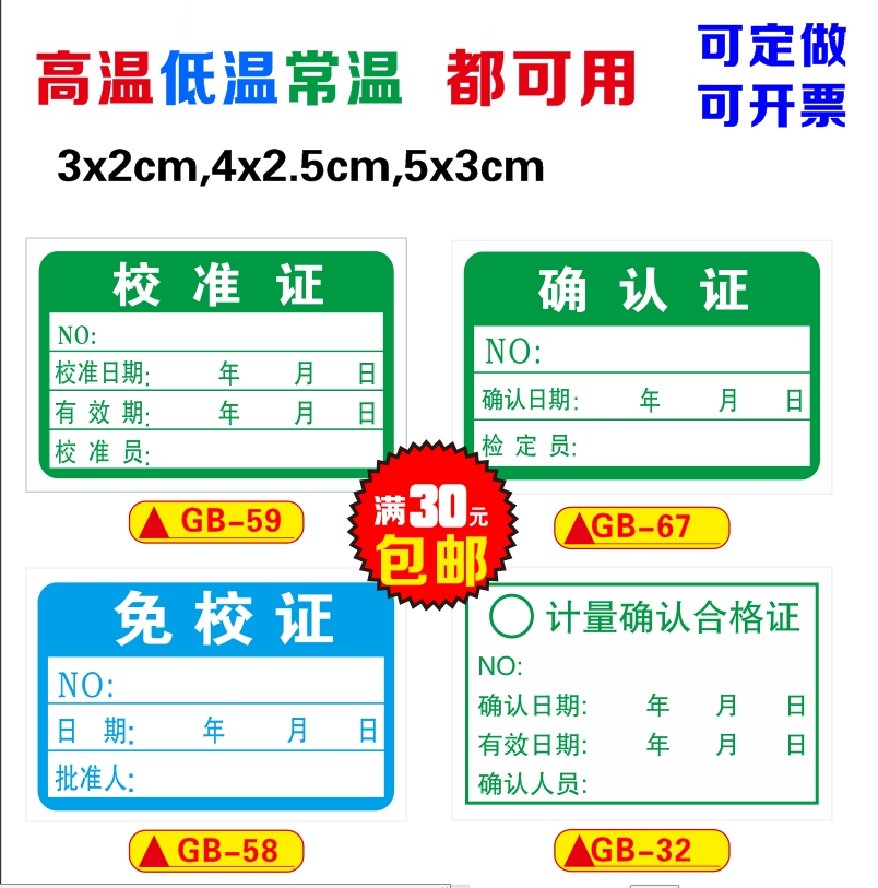 Calibration certificate exemption from school certificate measurement confirmation of conformity of high and low temperature and strong adhesive adhesive sticker check mark can be set
