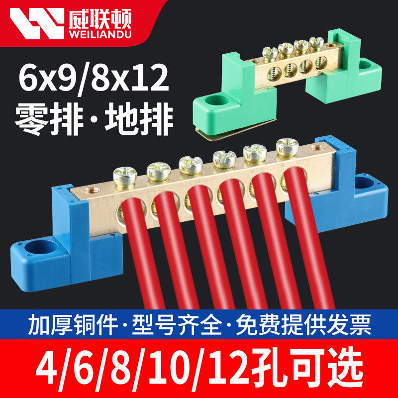 Zero - wire copper terminal block 6*9 grab copper rod ground zero ground distribution box cabinet connected high power current