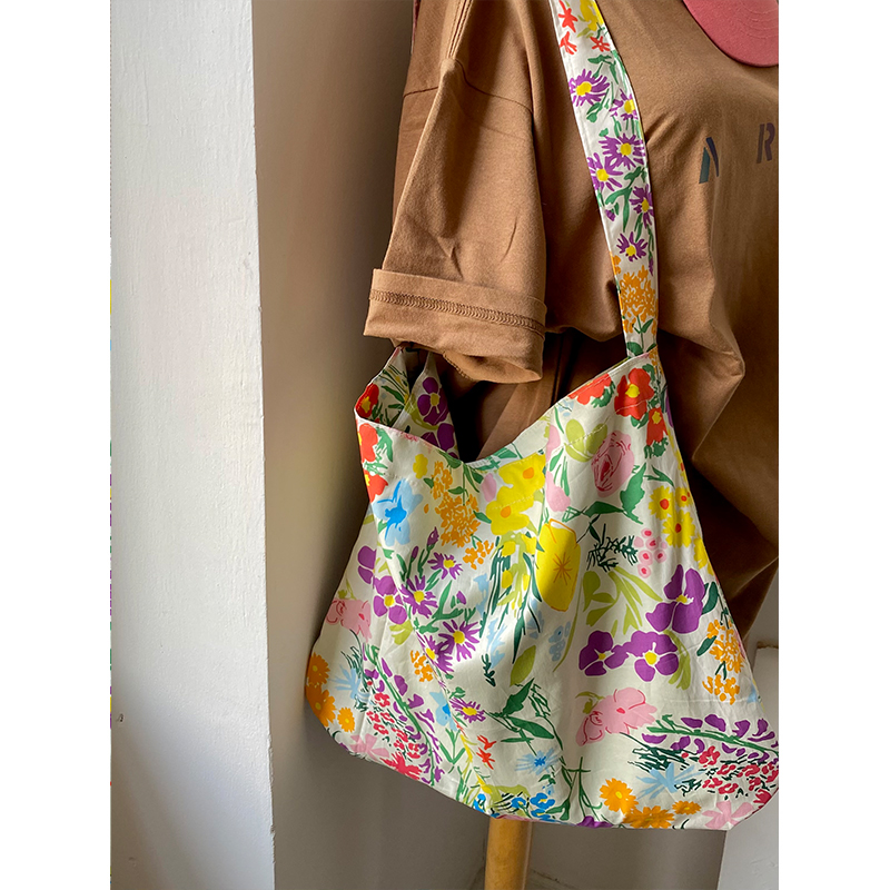 Spring image ~ Spring and summer with invincible new Japanese Korean flowers single shoulder cross package large capacity cloth bag woman