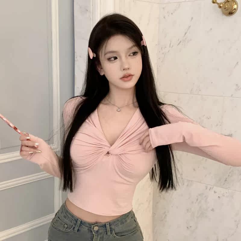 FAIRY MAJE Pure Wind Wind V-collar T-shirt in spring 2023 Sexy Spirit Sexy Girl High Waist Short Coat