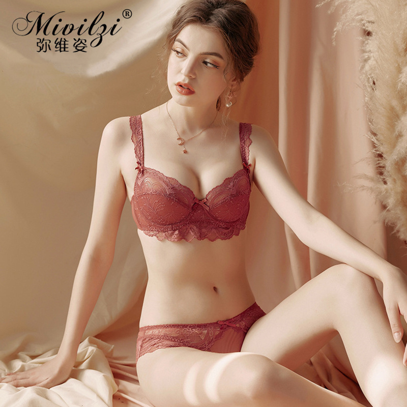 MIVILZI Thin Bra Set Sexy Adjustable Zodiac Year Bra Temptation Lace Big Breast Showing Small Underwear