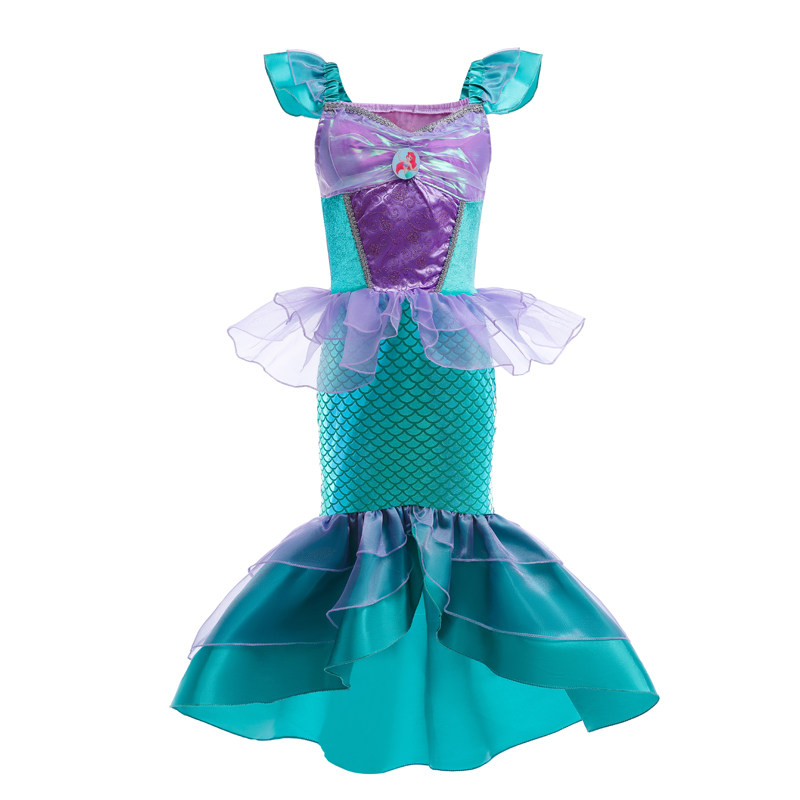 Small Mermaid Princess Dresses Love Riel Girl Girl Dress Children Fish Tail Long Dress Summer Pure Cotton Baby Clothes-Taobao
