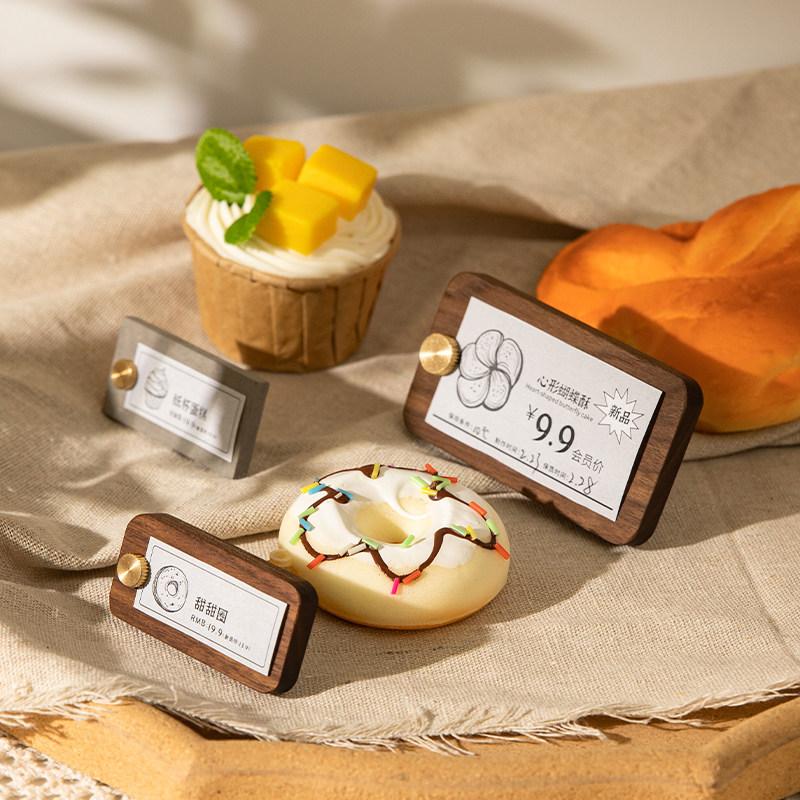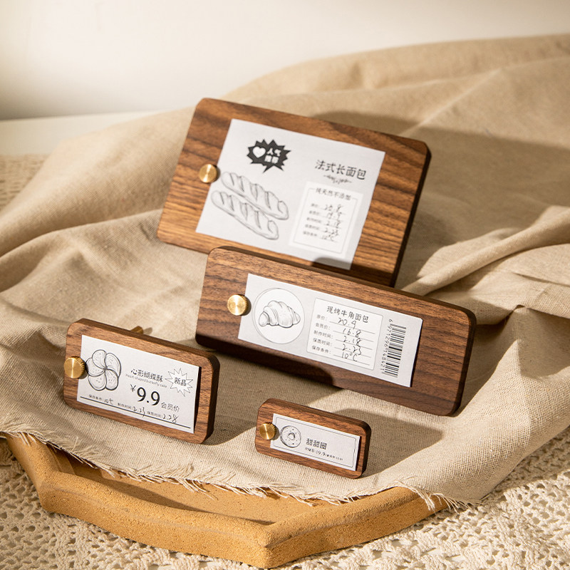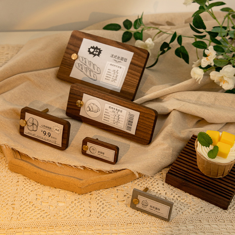 Black Hu Peach Wood Price Display Board High-end Bread Cake Coffee Goods Solid Wood Price Tag Card Price Tag-Taobao