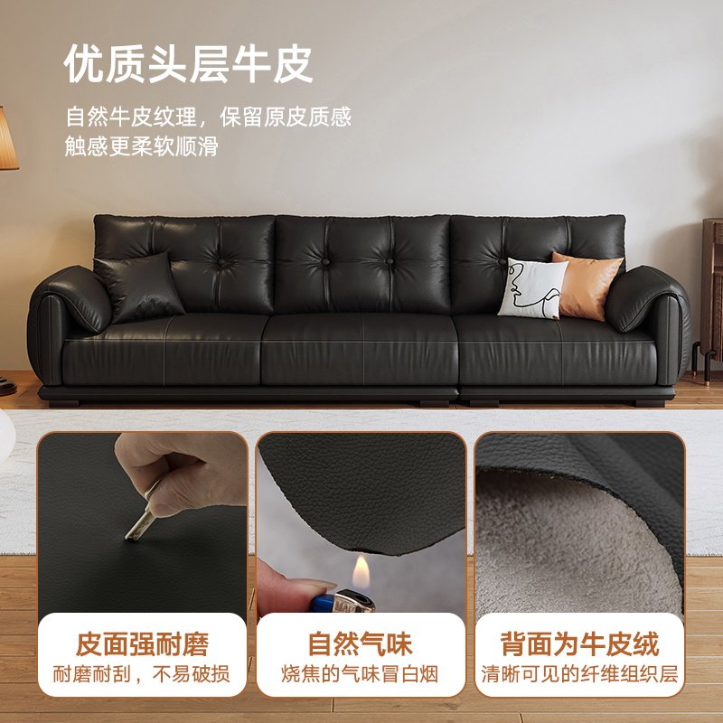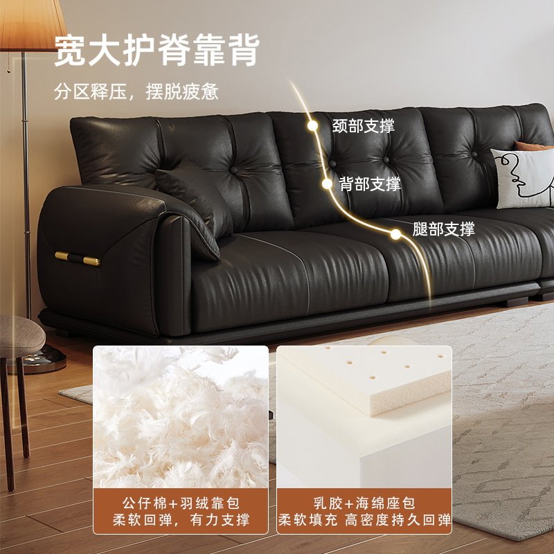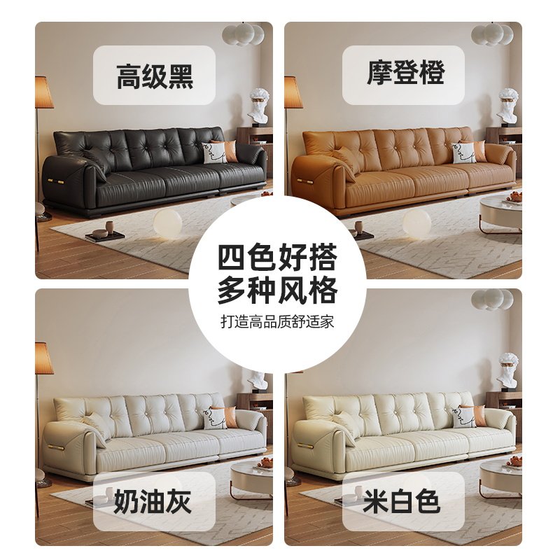 Winter Bear Willy-style Extreme Minimalist Layer Cow Leather Sofa Living Room Small Household Type Light Lavish Genuine Leather Clouds Sofa Down Straight Up-Taobao