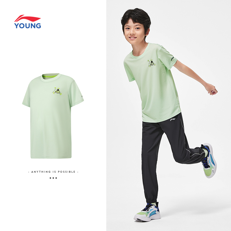 Li Ning Children's Clothing Short Sleeve Running T-Shirt Male Children Boy Running Suit Perspiration Comfort Summer Sportswear-Taobao