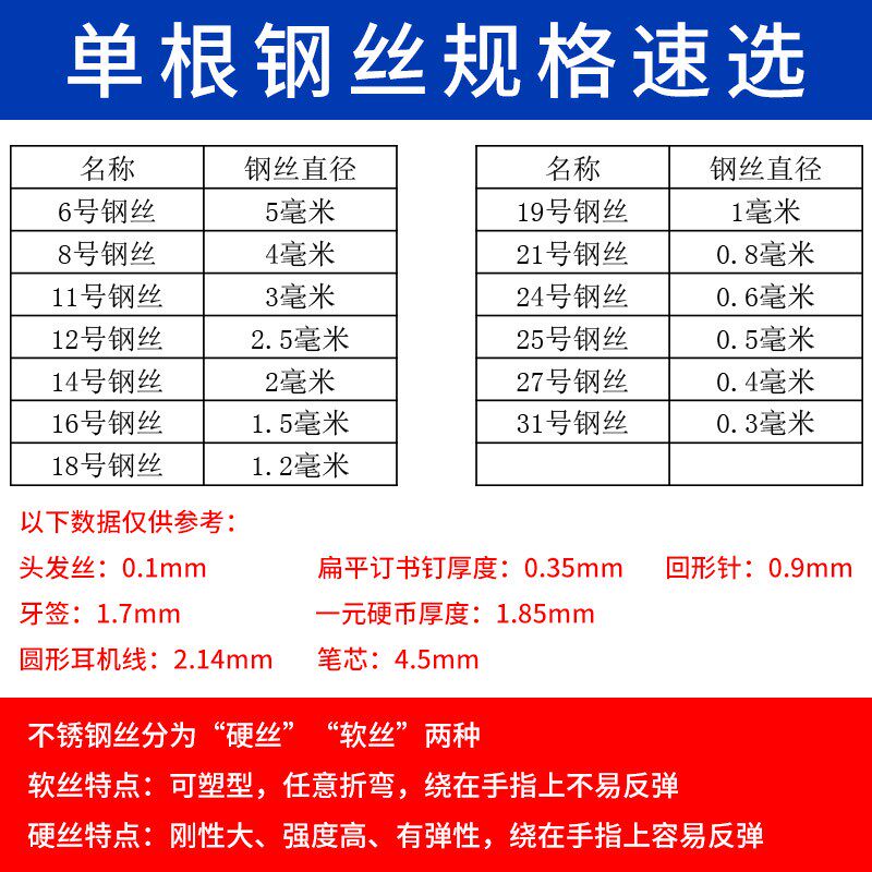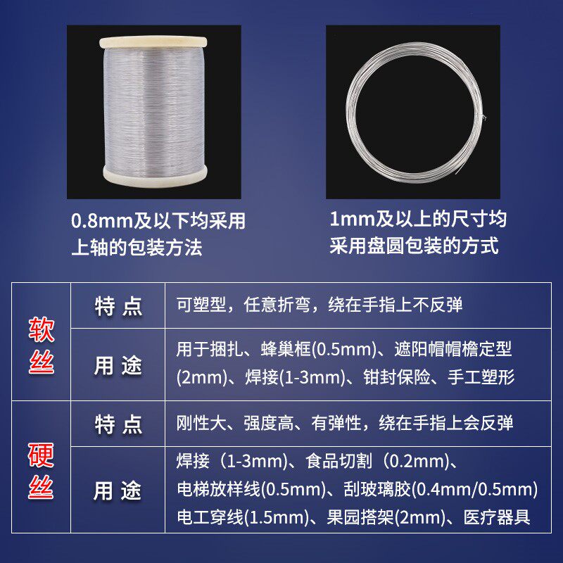 0 1mm thick (100 m) (too fine to divide soft and hard) 0 2mm thick Soft wire(100 m) 0 3mm thick Soft wire(100 m) 0 4mm