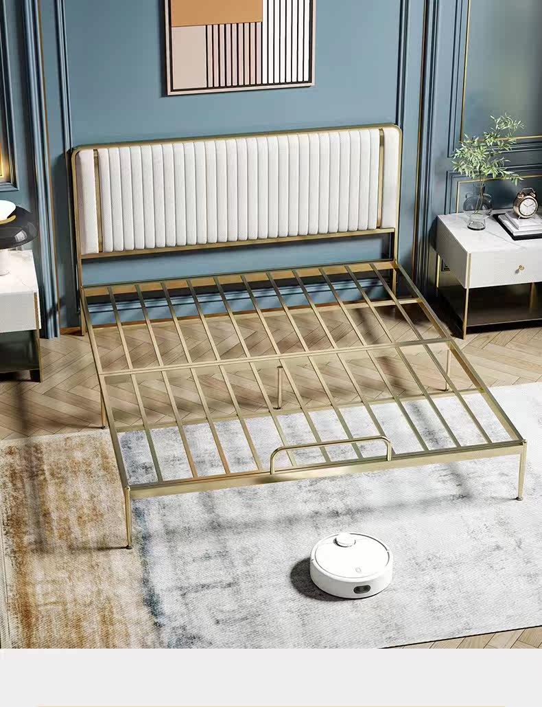 Grey White Backrest Golden Bed Frame Deep Grey Blue Backrest Golden Bed Frame Fireworks Orange Backrest Golden Bed Frame Custom Color Contact Customer Service