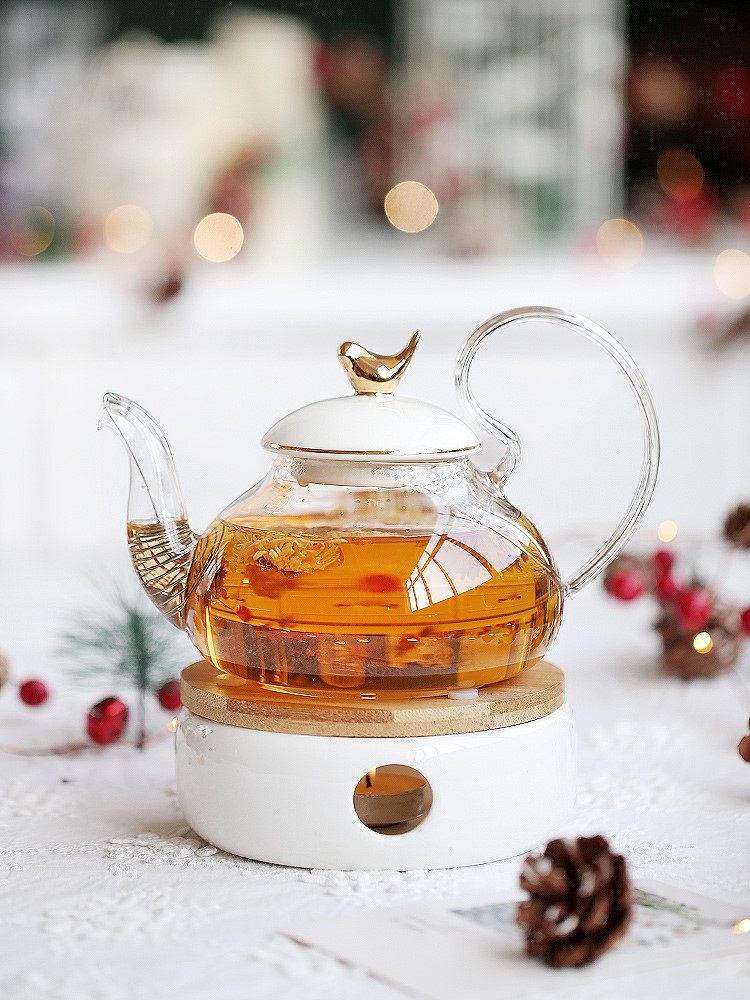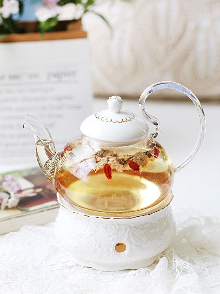 Coolle those times Flower teapot candle heated fruit teapot set Heat glass afternoon teapot