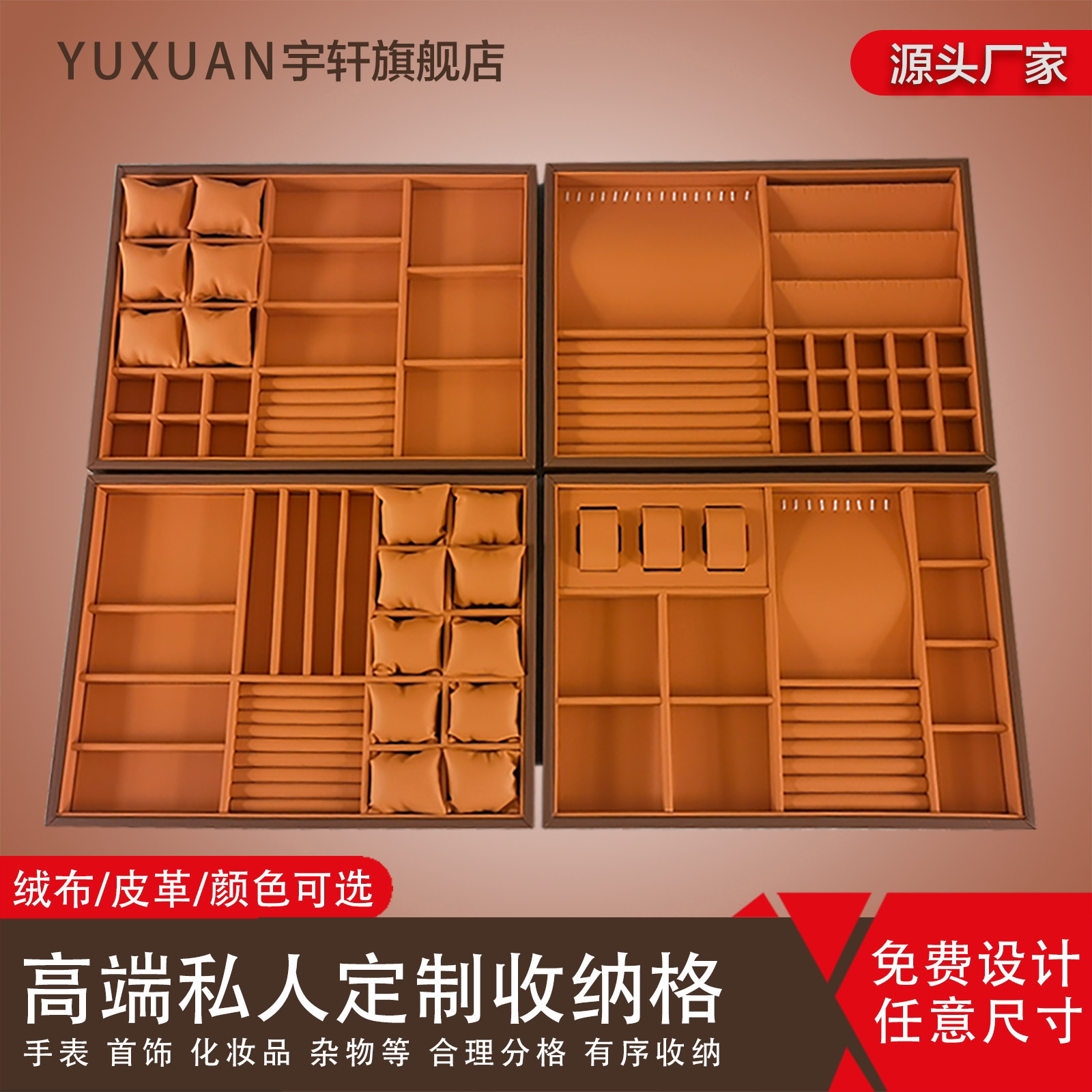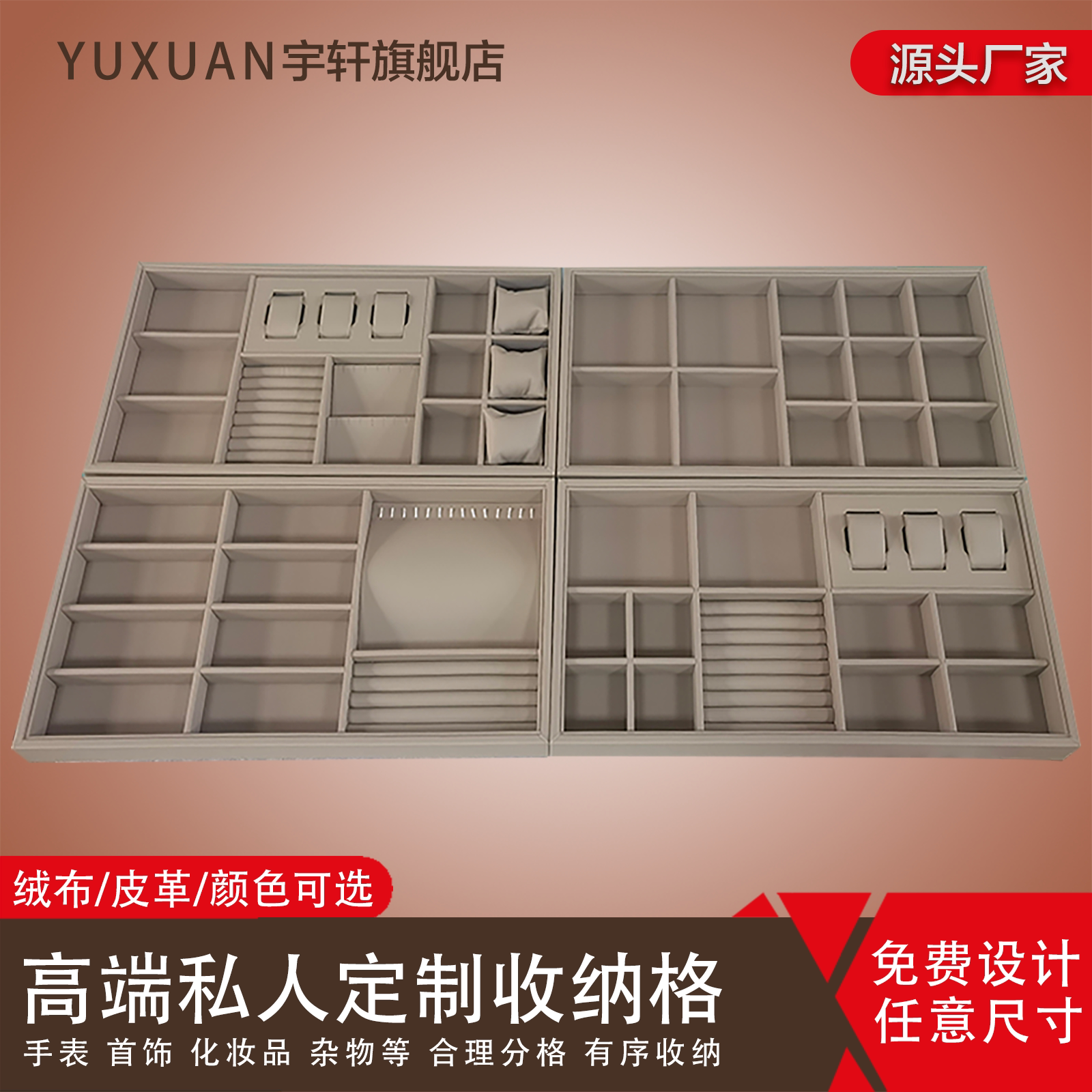 Advanced Leather Customized Jewelry Containing Box Drawers Separation Ornament Trays Home Multi-Treasure Grid Functional Show Shelf-Taobao