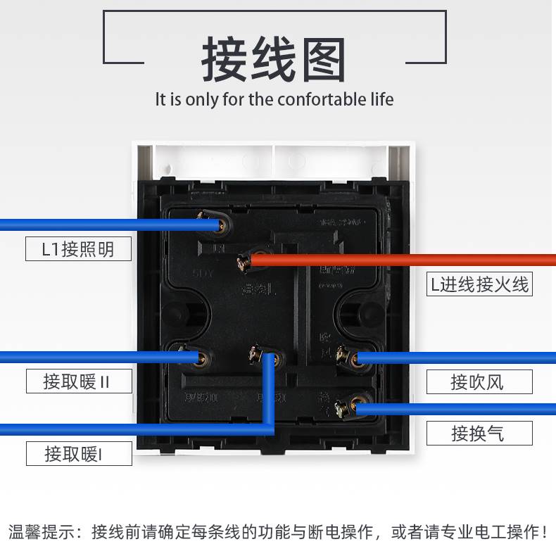86 Five - Open Bath Switch Household Bathroom Single Motor with Power Heating on the slip - cover waterproof panel