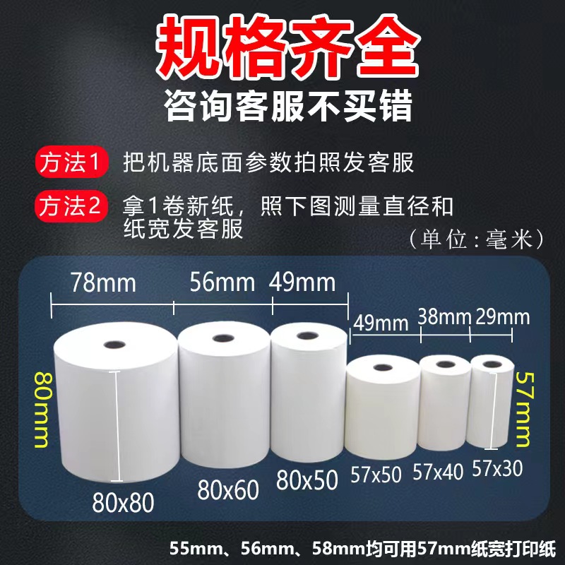 Beauty group takeaway 57 * 50 cashier paper 100 volumes 57 * 50 no tube core 100 volumes 80 * 50 small tube core 50 80 80 * 60 small tube core 50 80 80 * 80 large tube core 30
