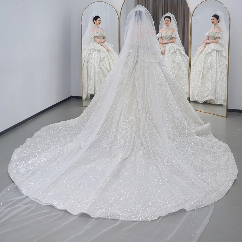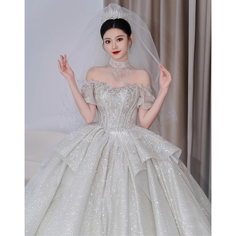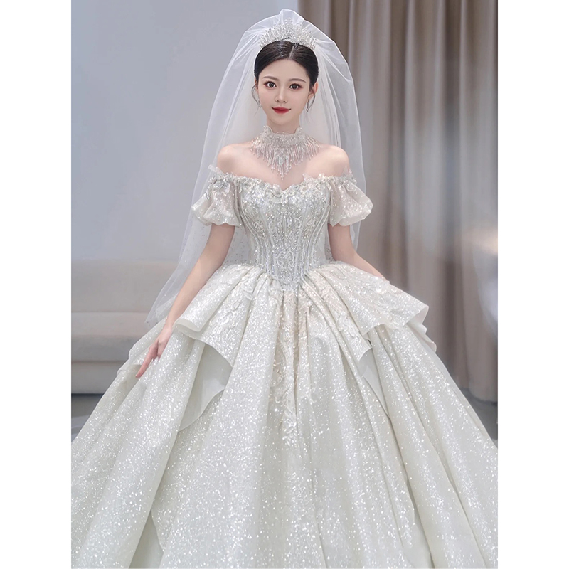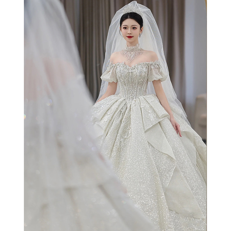 Wedding Dress 2023 New Bridal Style Fugitive Princess Senior Sensation with Shoulders Super Fairy Heavy Extravagant Trailing Light-Taobao