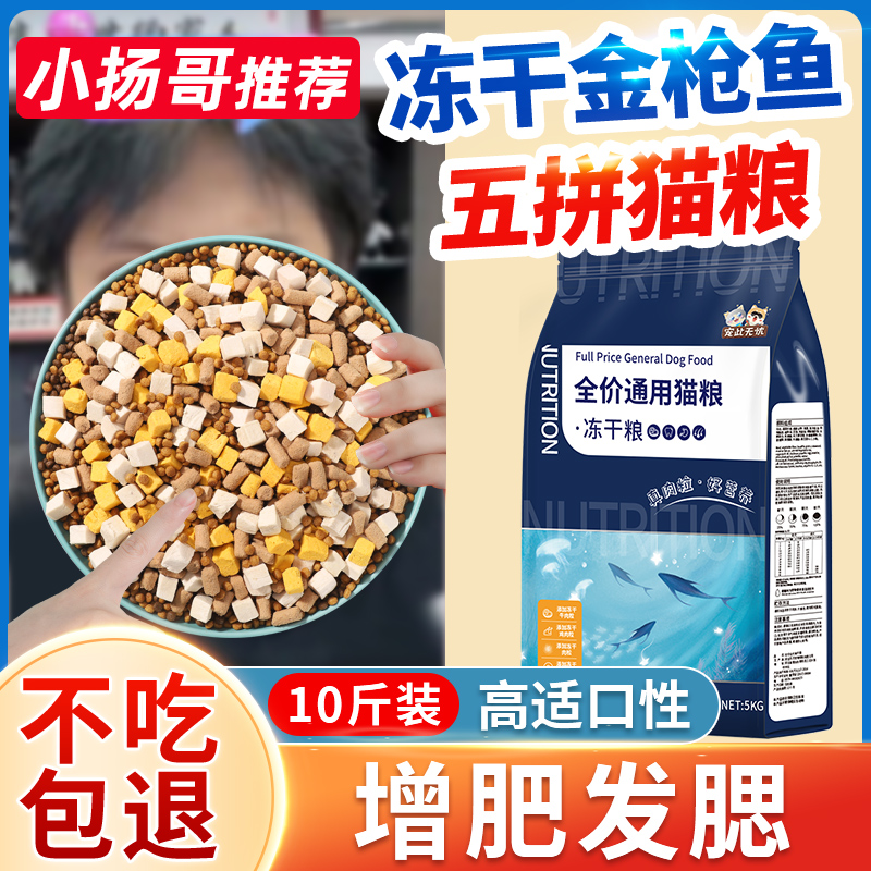 Freeze-dried cat food 10 catty for cat 5kg young cat raw bone meat fatter nutrition hair blush full price 20 large bag universal-Taobao