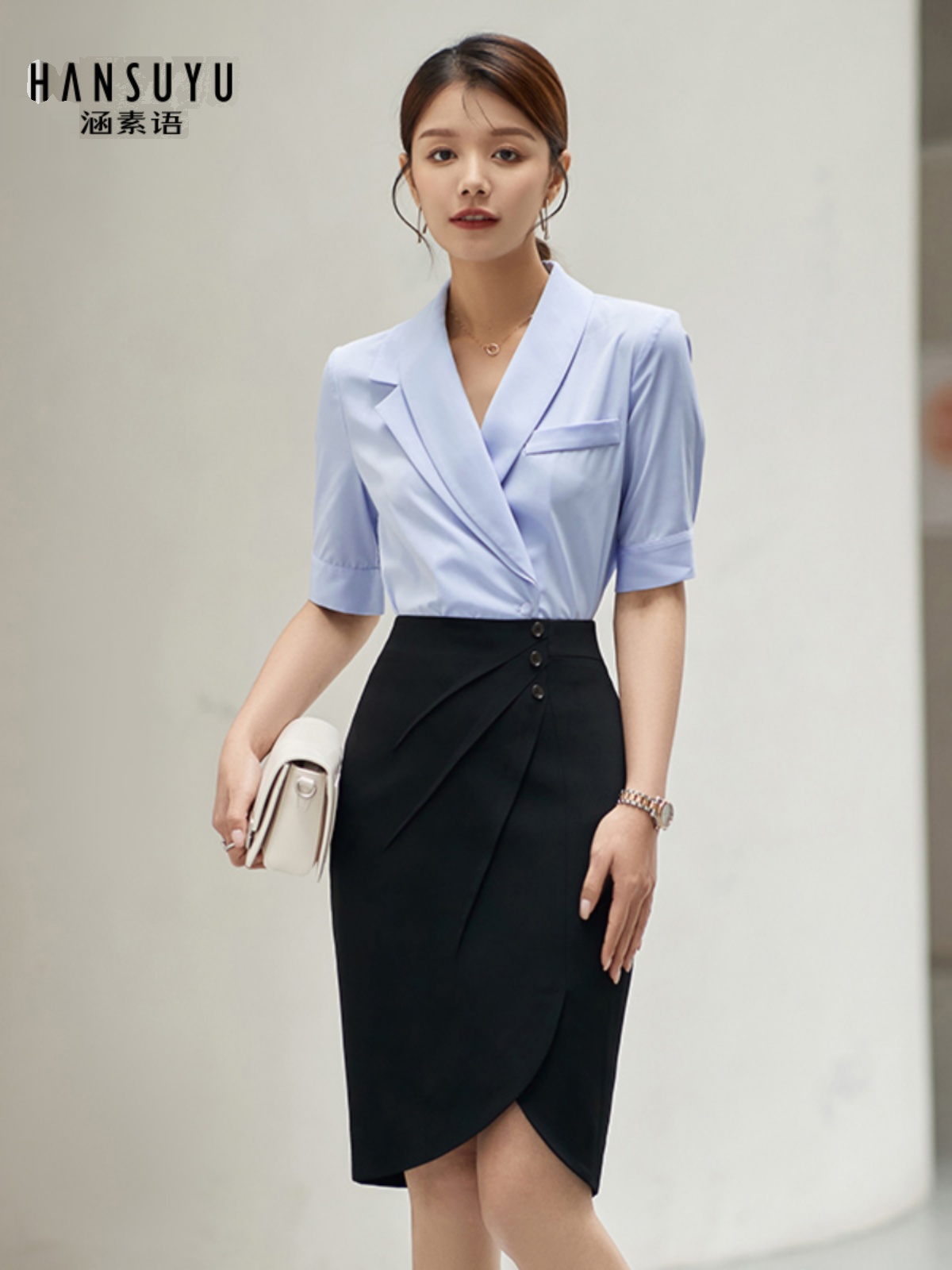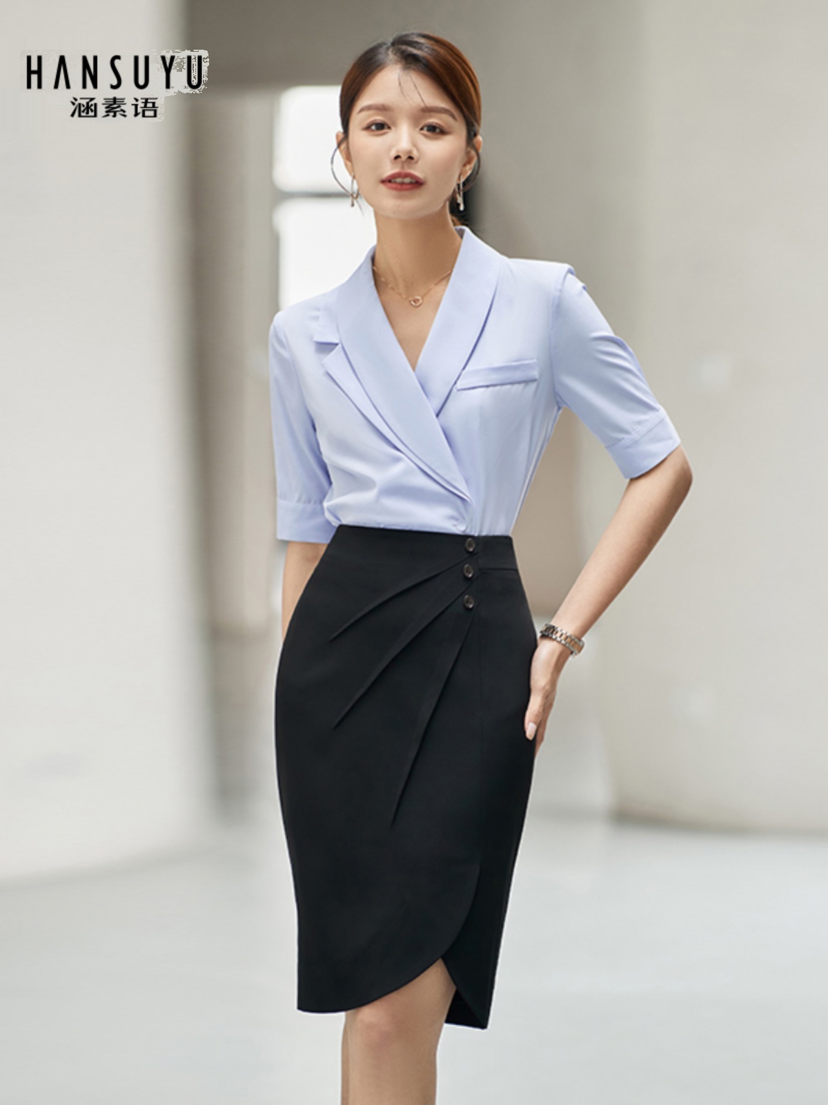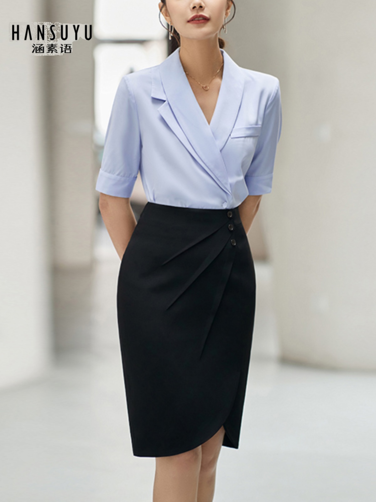 High-end professional wear female summer wear goddess shirt suit commuter jewelry shop work clothes
