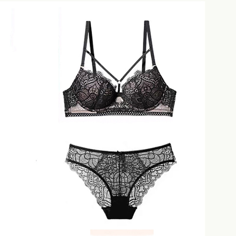 MIVILZI sexy underwear, small breasts are gathered to reveal a beautiful back, black bra set, thin upper and thick lace bra