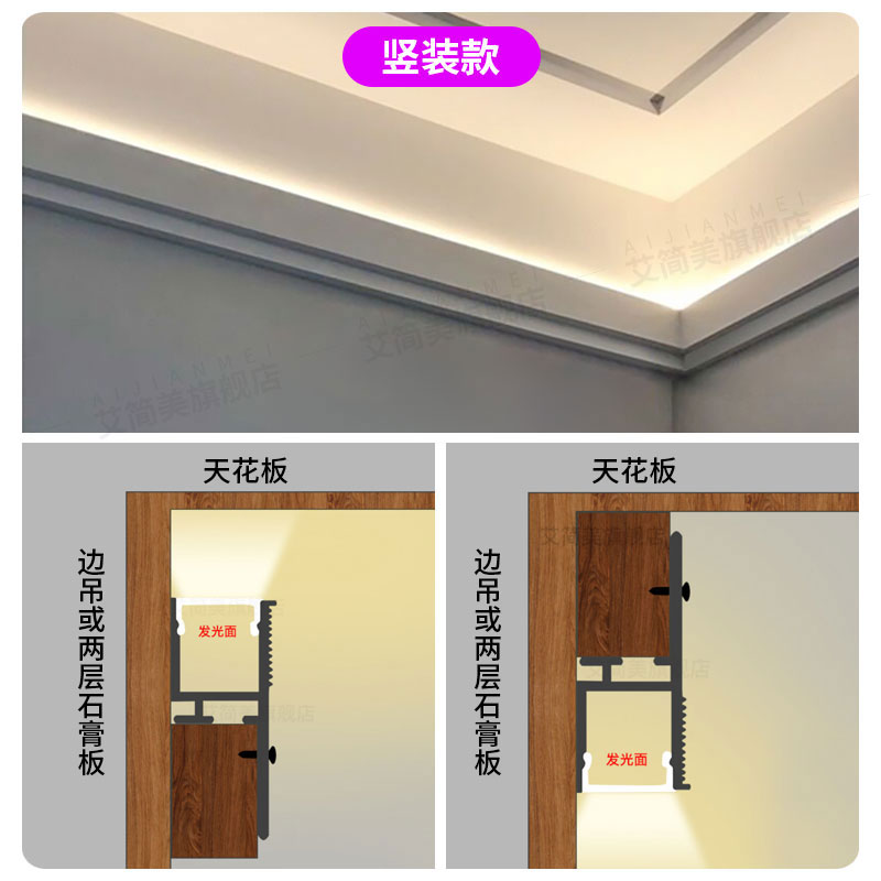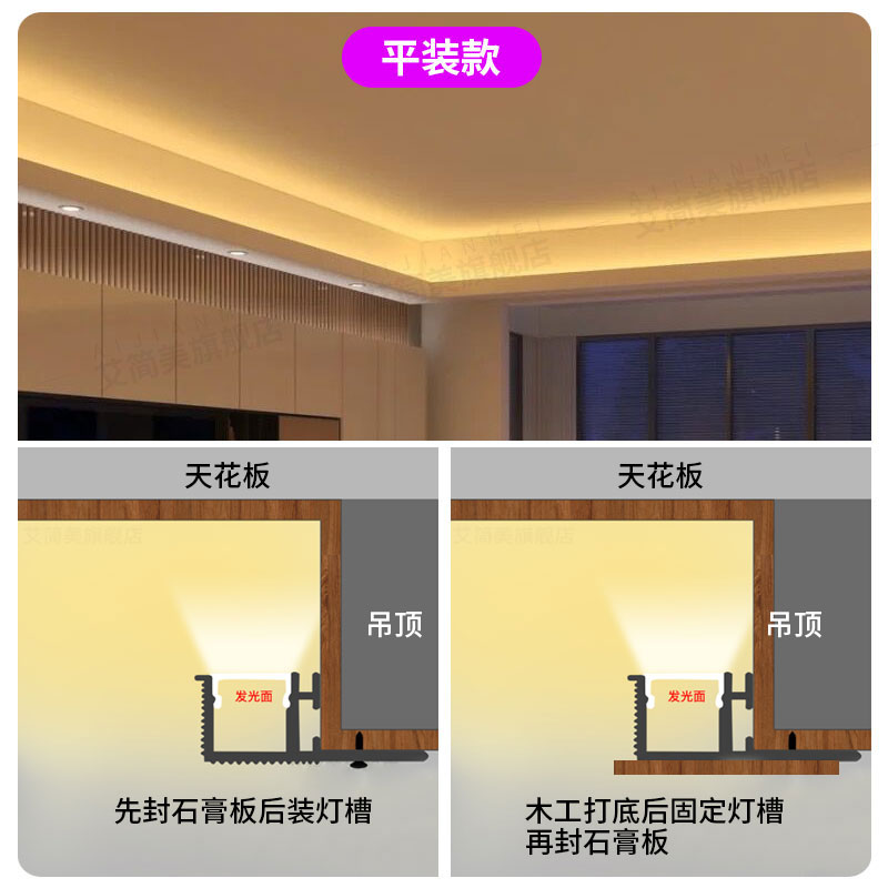 Double eye leather up to light linear lamp with living-room ceiling linear light strip unilateral side luminous aluminium groove linear light slot-Taobao
