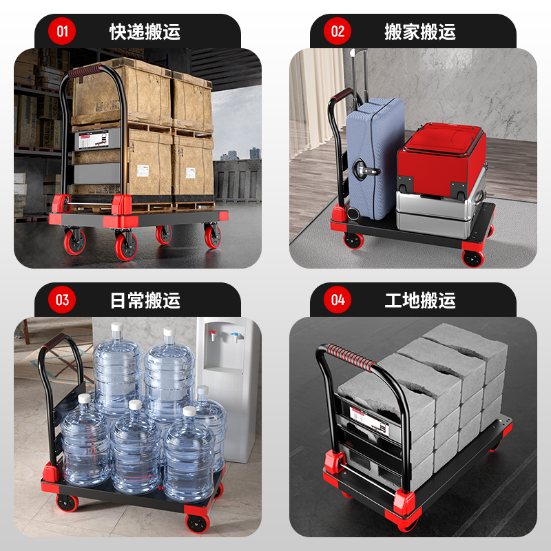 Deri West Small Cart Pull Goods Home Trolleys Porter Car Light Flatbed Truck Mute Foldable Express Trailer-Taobao