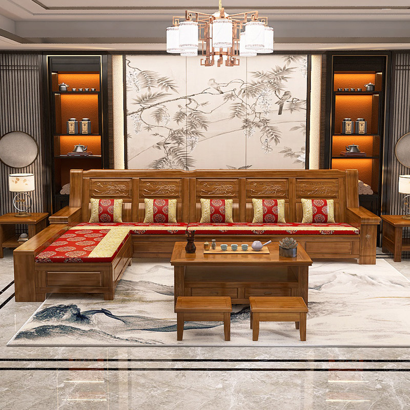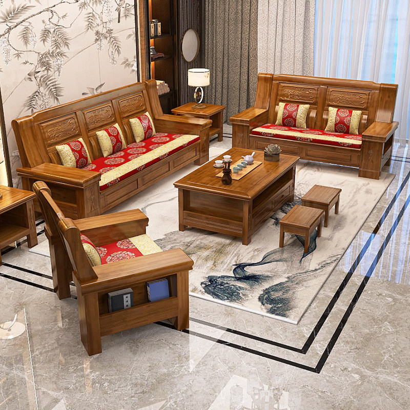Camphor wood solid wood sofa combination all solid wood winter and summer simple living room modern Chinese style small apartment furniture