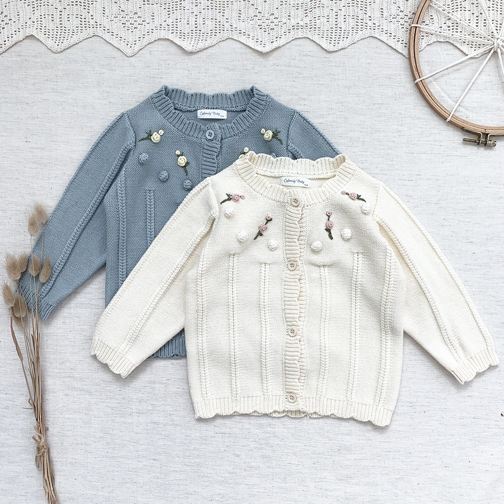 Girl gas sweater 2023 spring and fall June baby sweater small coat 1 - 3 year old newborn knife shirt
