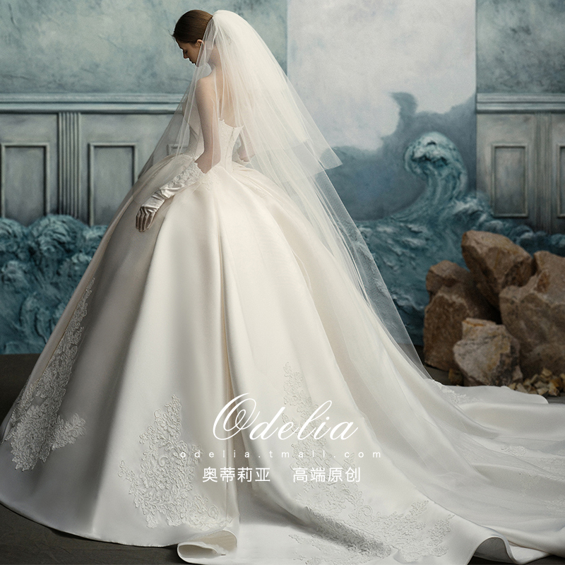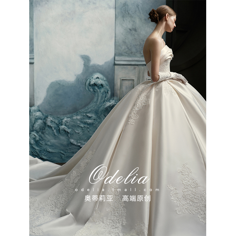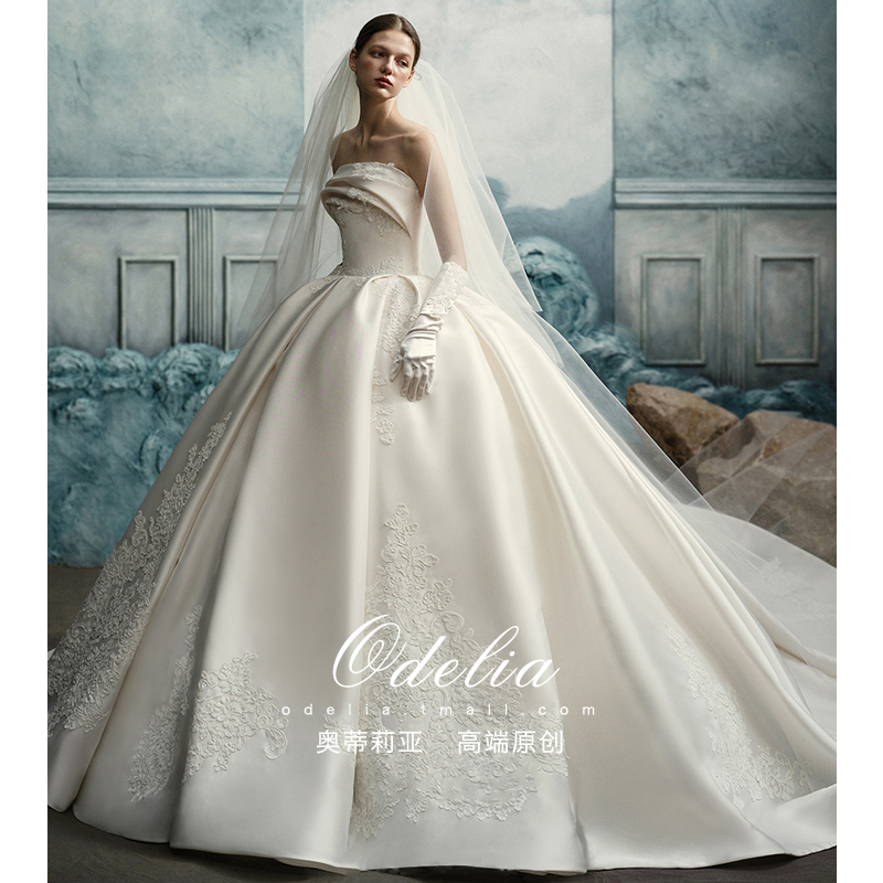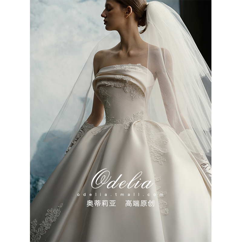 odelia "Floating Island" tube top main wedding dress 2024 new bridal large tail French satin main yarn