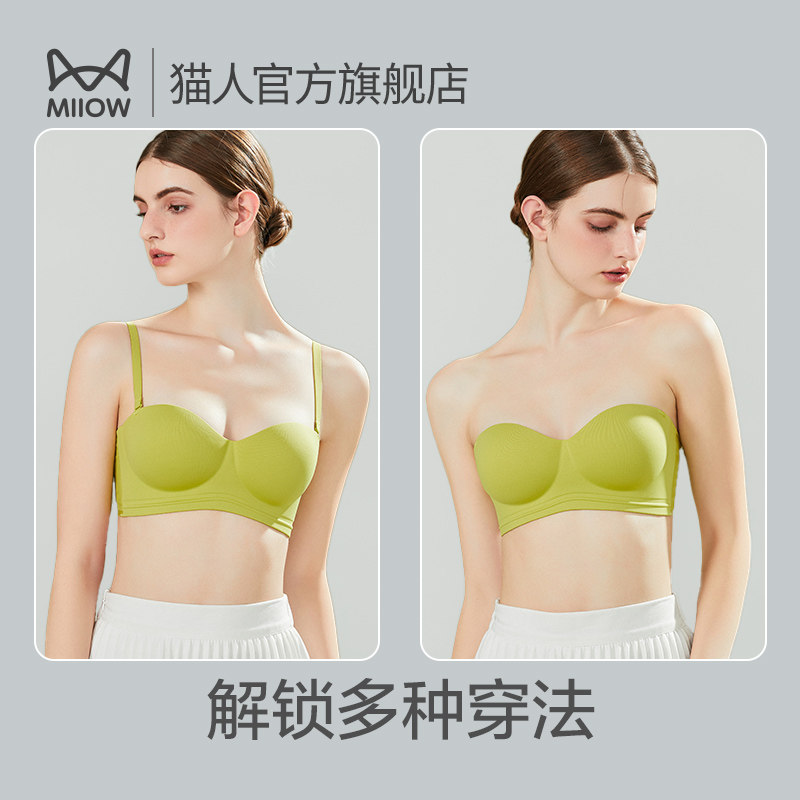 Cat person lingerie female small breasted with large upper to anti-sagging free steel ring without shoulder strap bra without scar bra-Taobao