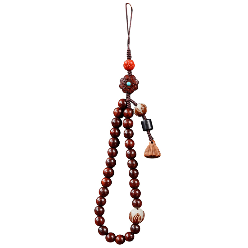 Small leaf red sandalwood mobile phone chain lanyard short wrist pendant pendant jewelry mobile phone shell lanyard Chinese style pendant rope