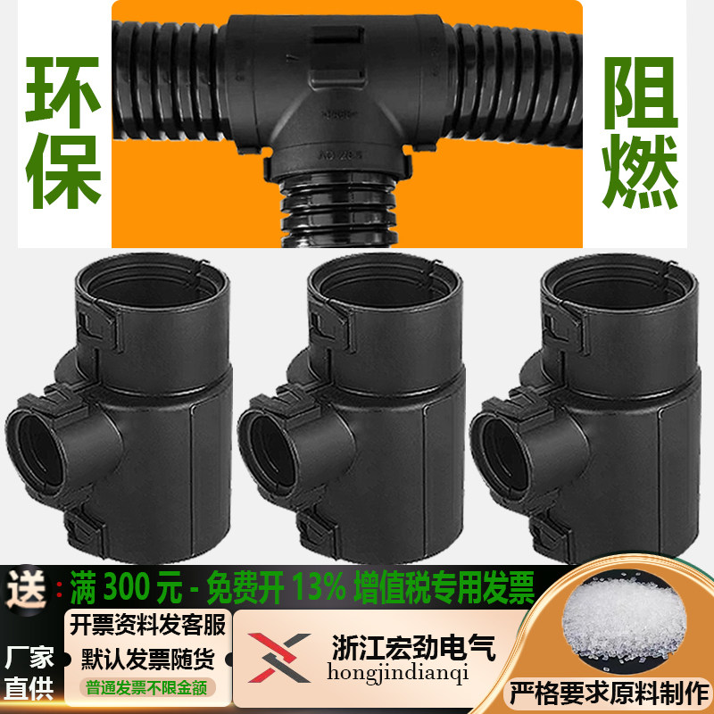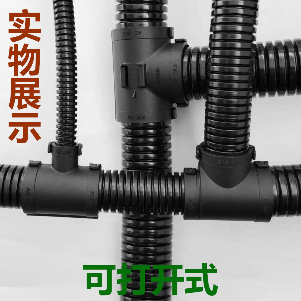 Plastic bellows tee joint flame retardant T-type Y type wave pipe harness Zbuckle PA66 nylon AD separable diameter-Taobao
