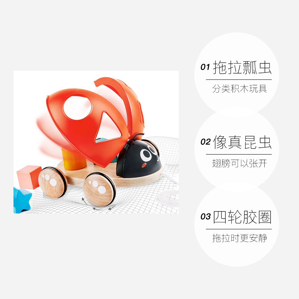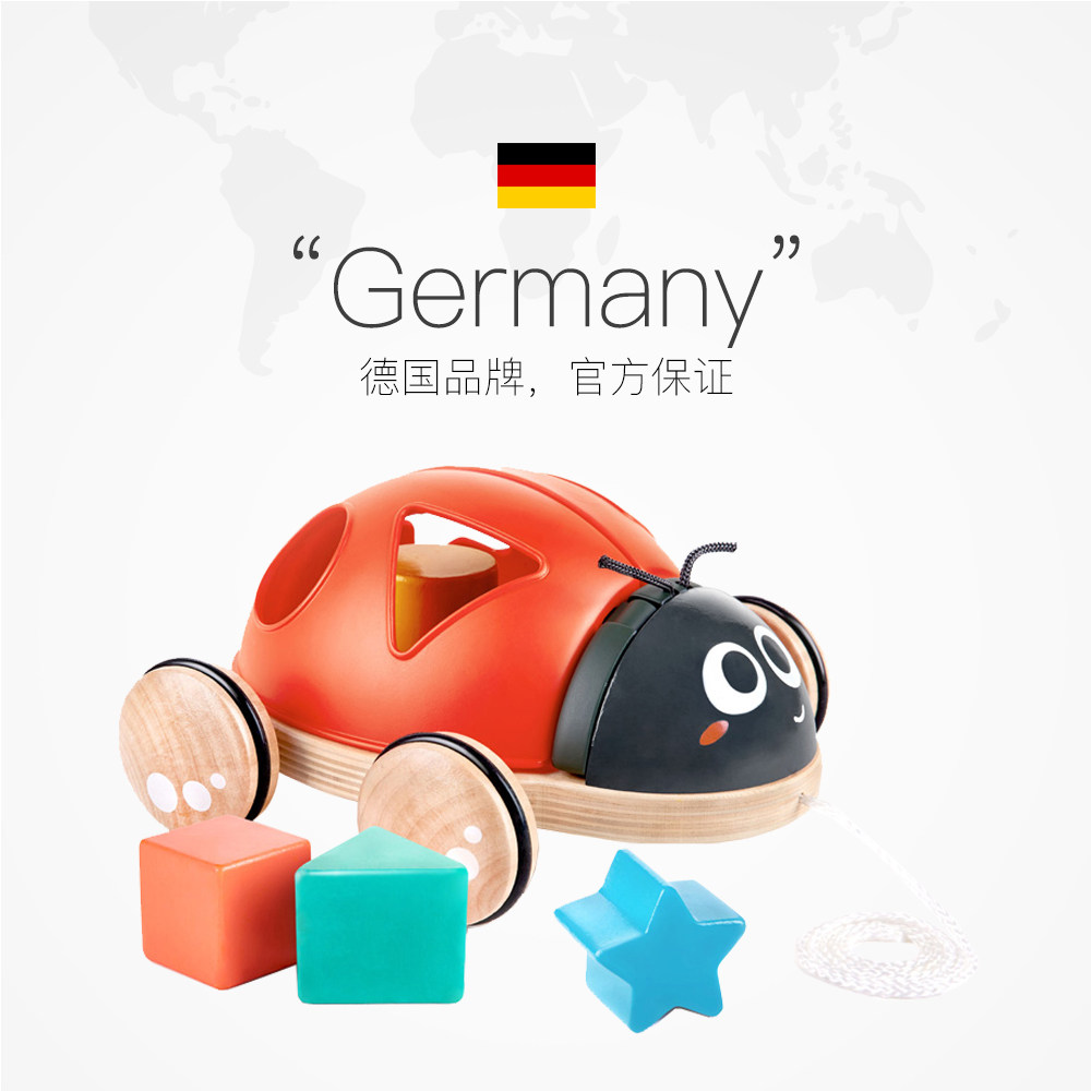 (self-employed) German Hape classification building blocks towing ladybug infant baby wooden steps hand pulling rope toy-Taobao