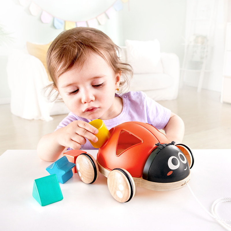 Hape classification building blocks drag ladybug E0364