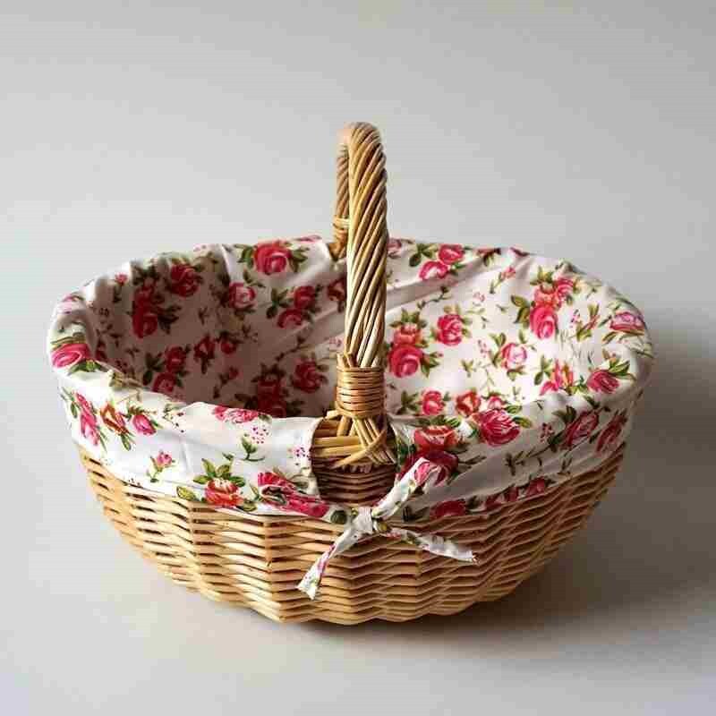 Wicker, bamboo handcuff basket collection basket shopping basket knitting flower basket large field picnic basket