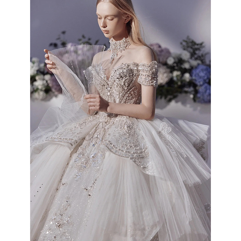 Heavy Work Bride Wedding Dress 2023 New Autumn/Winter Main Dress Superior Wedding Dress Pregnant pregnant woman Big code Little Subfat mm Winter-Taobao