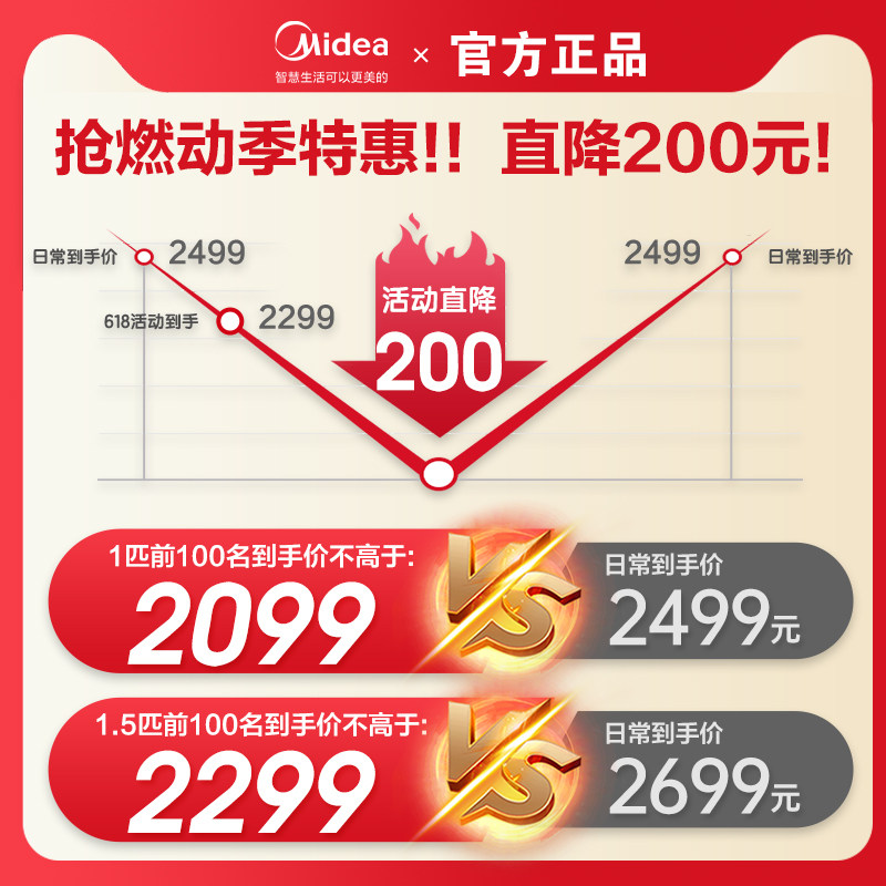 Midea Air Conditioner New Level Inverter Large 1P1 5 HP Household Heating, Cooling, Energy Saving Hang Up Official Website Official Flagship Store