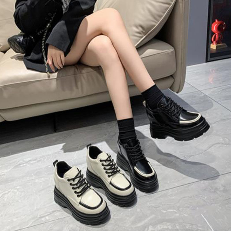 European Station Genuine Leather Heightening Small Leather Shoes Woman 2023 Spring New Pine Pastry Thick Base High Heel Single Shoes Little Sub Woman Shoes-Taobao