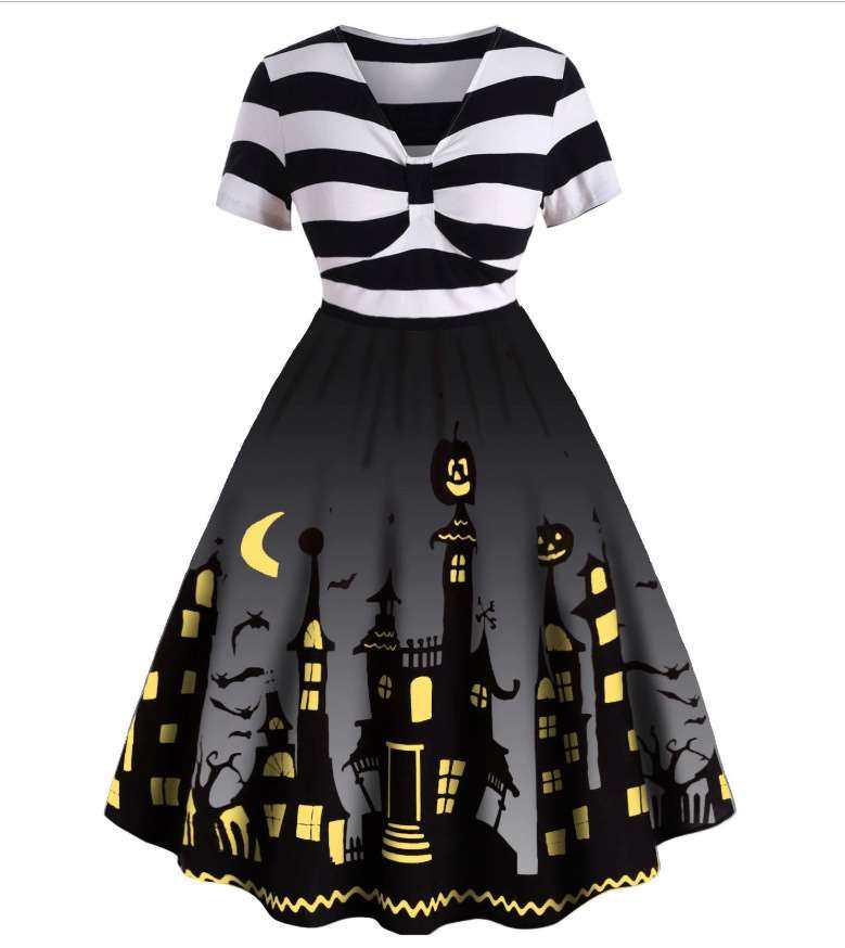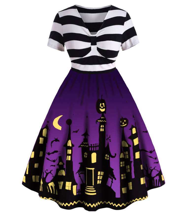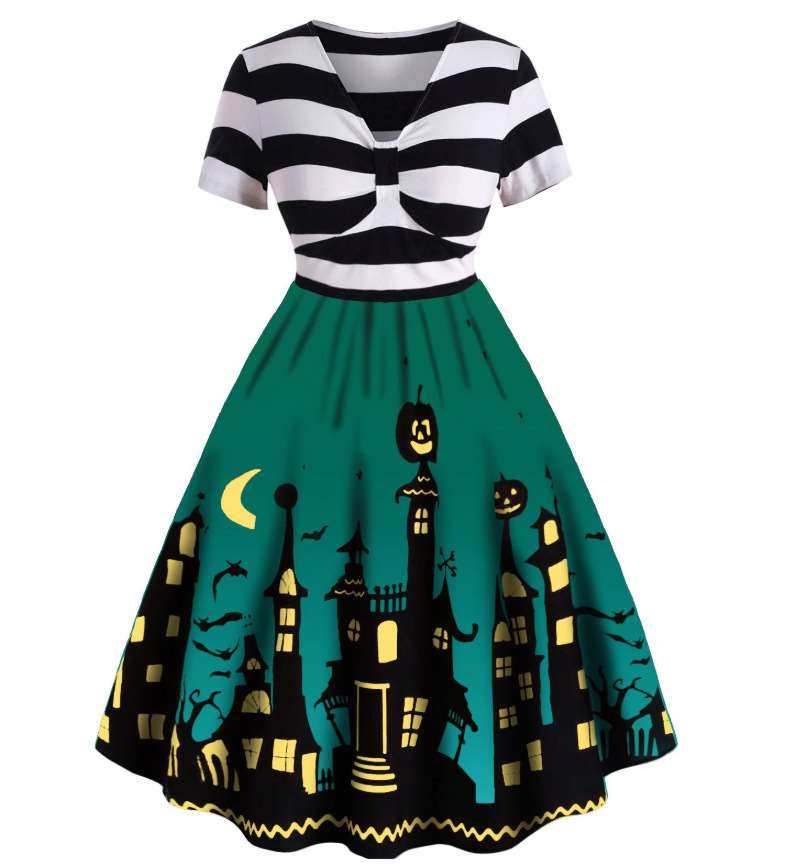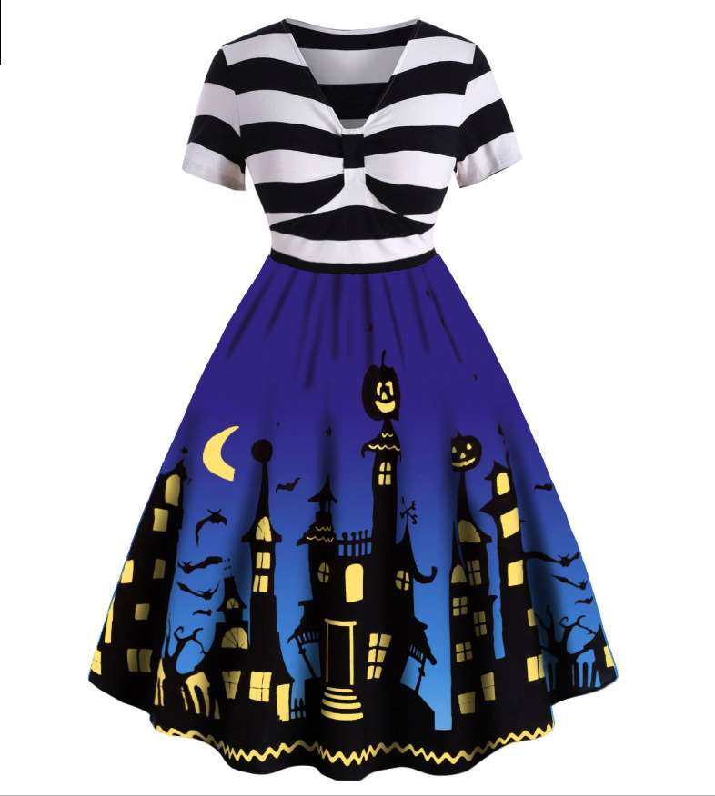 V-neck triped contrat color titching Halloween ort-leeved wi-Taobao